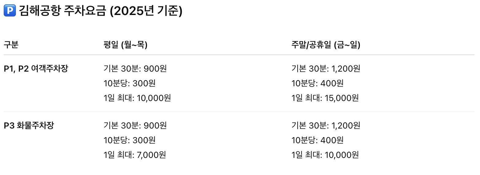 2025년 김해공항 주차요금 안내